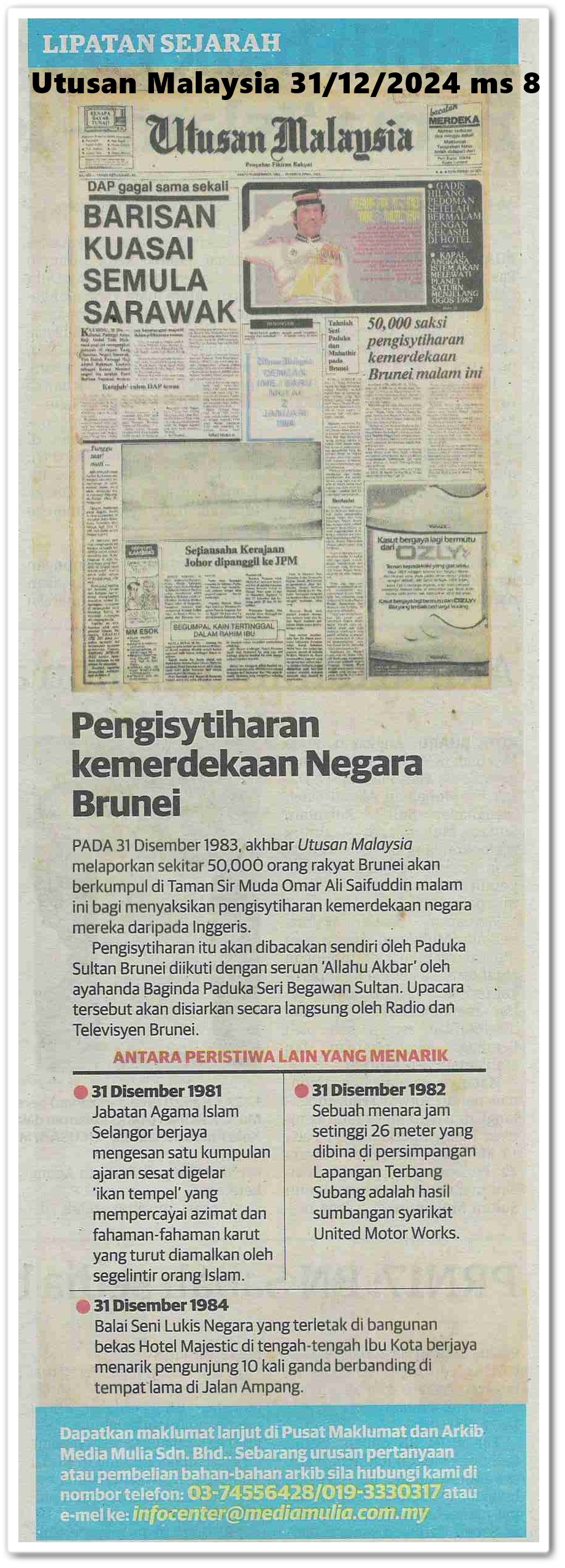 Lipatan sejarah 31 Disember | Keratan akhbar Utusan Malaysia 31 Disember 2024